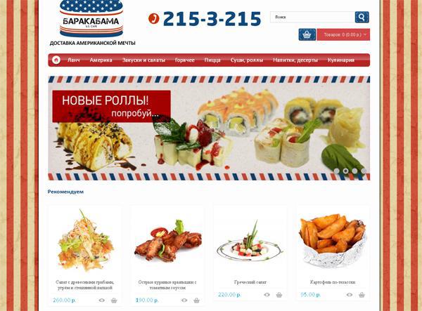 Оригинальный сайт доставки готовых обедов, сделанный по типу онлайн магазина. Фоновый оттенок страниц оформлен как американский флаг., популярные блюда рекламируются в слайдах, а в рекомендуемых товарах на главной находятся фото блюд, которые можно заказать сразу же. Магазин основан в Перми, поэтому её жители получают обеды в тот же день без промедления.
