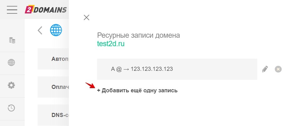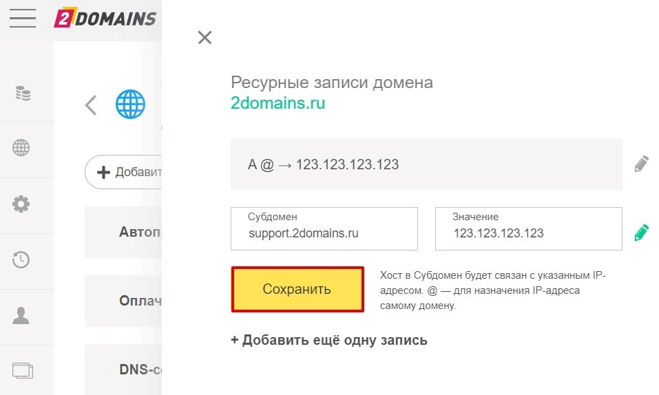 Если для домена указаны ns1.hosting.reg.ru и ns2.hosting.reg.ru, запись о поддомене будет добавлена автоматически.