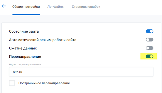 В разделе Сайты → Ваш_домен → Настройки → Веб-сервер панели управления хостингом активируйте слайдер Перенаправление;