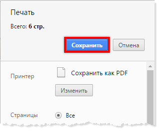 Этот способ хорош тем, что на компьютер сохраняется только один файл, без папки. Но для его открытия должна быть установлена специальная программа для чтения pdf файлов. Это популярный формат, поэтому часто такая программа уже есть.