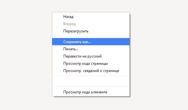 - Выполнить клик правой кнопкой мыши и выбрать «Сохранить страницу как».