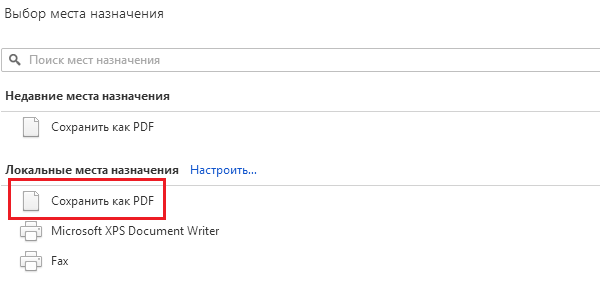В браузерах Mozilla Firefox и Internet Explorer окошко выглядит иначе. Но принцип тот же: из списка с принтерами нужно выбрать тот пункт, в котором будет аббревиатура «PDF».