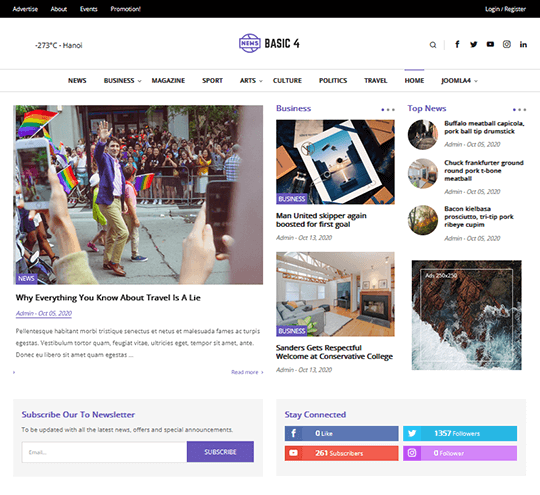 Квикстарт данного шаблона позволяет быстро развернуть новостной портал на Joomla 4.