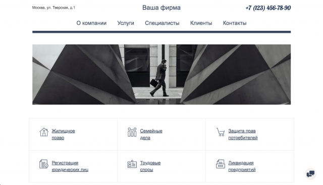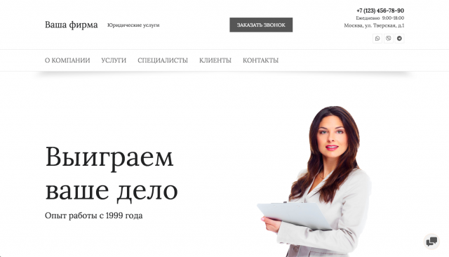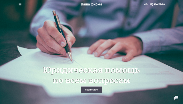 Определитесь с дизайномВ нашем каталоге сотни готовых шаблонов для разных тематик, включая юриспруденцию. Выбирайте любой и адаптируйте его под себя. Цветовые палитры, наборы шрифтов и эффекты анимации меняются в пару кликов. Все настройки выполняются в визуальном редакторе. Никаких навыков программирования вам не потребуется Посмотреть шаблоны