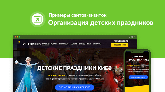 Vipforkids.com.ua – визитка студии аниматоров. Основной упор сделан на позиционирование деятельности через фотографии с локаций выступлений. Можно ничего не писать даже – и так понятно, чем занимается организация, насколько востребован и кто является его целевой аудиторией. Отдельным разделом вынесены галереи из фото и видео, где в удобном формате можно посмотреть фото и видео с мероприятий. Информация и контент на сайте формируют исчерпывающее представление о деятельности организации, добавить нечего.