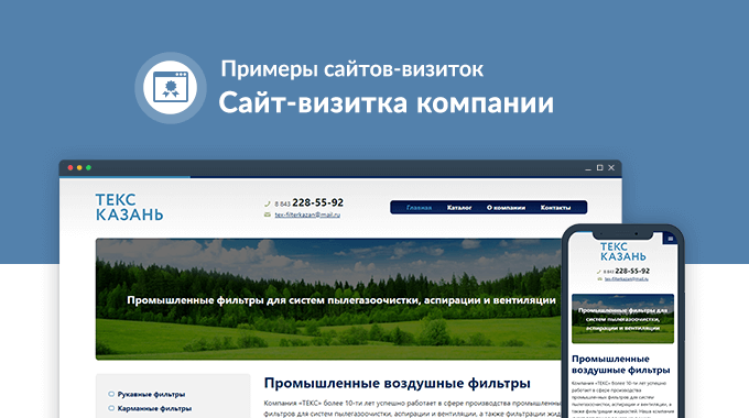 Texfilterkazan.ru – сайт компании, которая занимается производством различных типов промышленных фильтров. Дизайн адаптивный, очень простой и аккуратный. Нарочито минималистичный. Белая подложка в качестве фона хорошо выделяет границы блоков, которые чётко разделены между собой. Никаких эффектов, переходов цветовых, сложных форм и прочего. Единственное украшательство – скругление углов блоков. Шрифты просты, отлично читаются, цвет заголовков хорошо сочетается с зелёной темой сайта – экологичность, чистота и прочие ассоциации с эффектом от использования фильтров.
