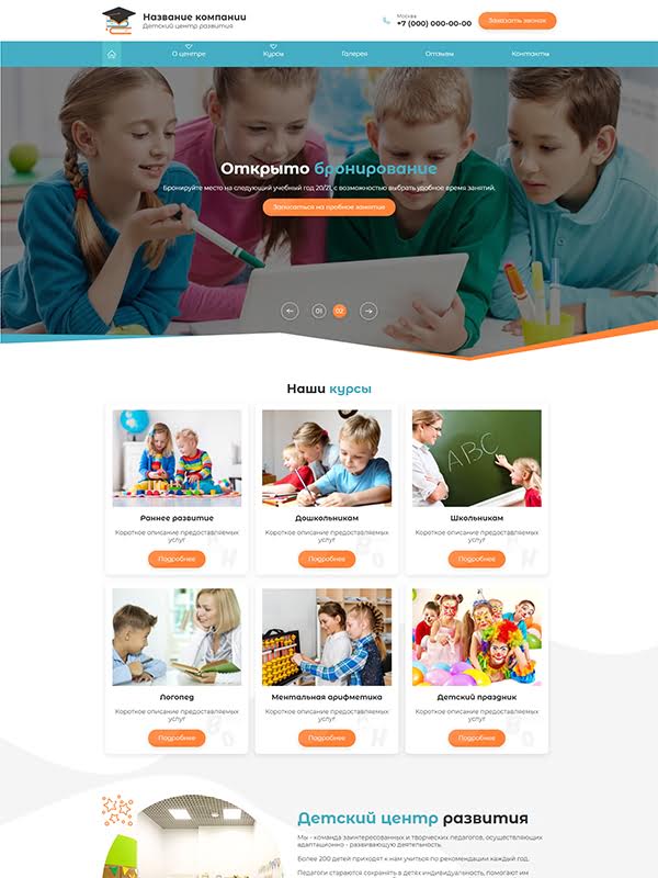 Шаблон сайта уже имеет готовую структуру, чтобы создать сайт воспитателя детского сада быстро и просто. Вам нужно выбрать один из 300+ готовых шаблонов, добавить свой текст, фотографии — и готово!
