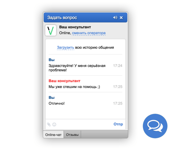 Вот пример виджета онлайн-консультанта для сайта: