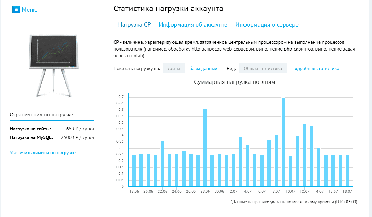 Вы не сможете увеличить объем дискового пространства или самостоятельно повлиять на скорость загрузки портала у читателей. Все эти характеристики делятся поровну среди всех ресурсов, размещенных на этом сервере.