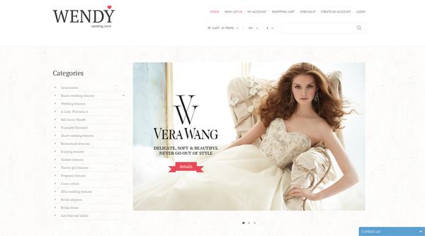 Шаблон в минималистском стиле для интернет-магазина свадебных платьев. Благодаря дизайну, выполненному в белом цвете, смотрится очень актуально и нежно, придавая фотографиям товара еще больше привлекательности.
