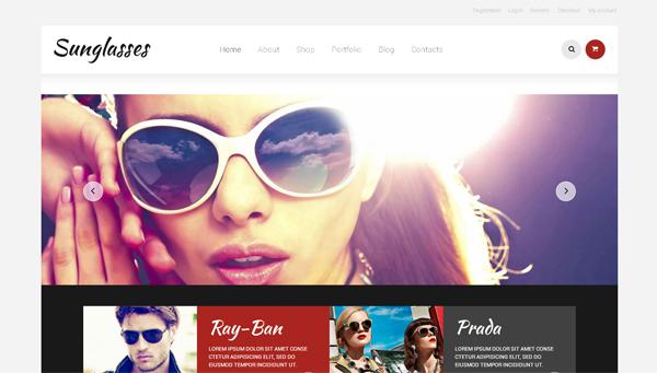 Еще один шаблон на WordPress с плагином WooCommerce является ярким примером дизайн для интернет-магазина очков. Привлекает внимание контрастная цветовая схема и использование рукописных шрифтов.